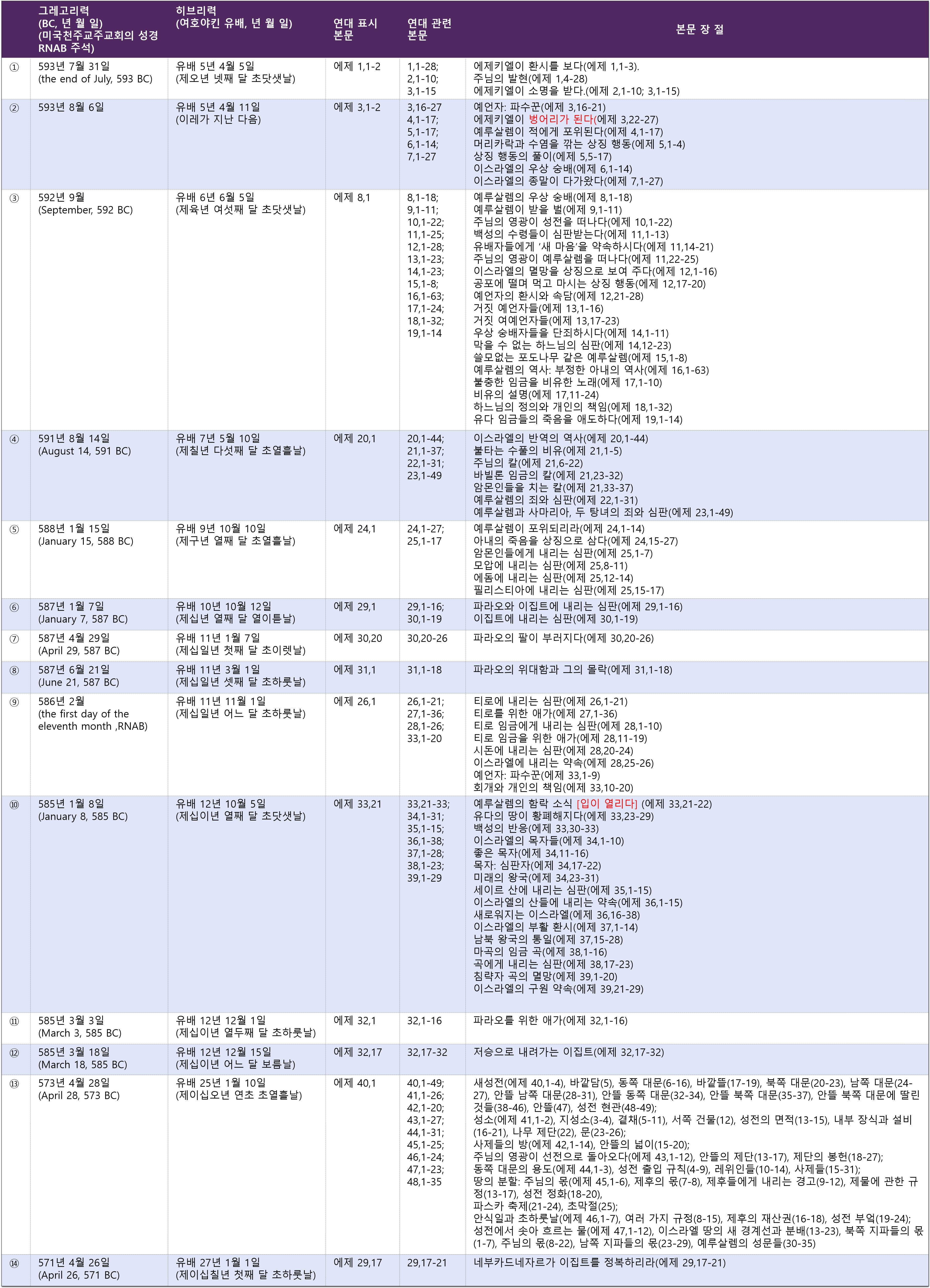 ▶에제키엘서 본문별 연대표