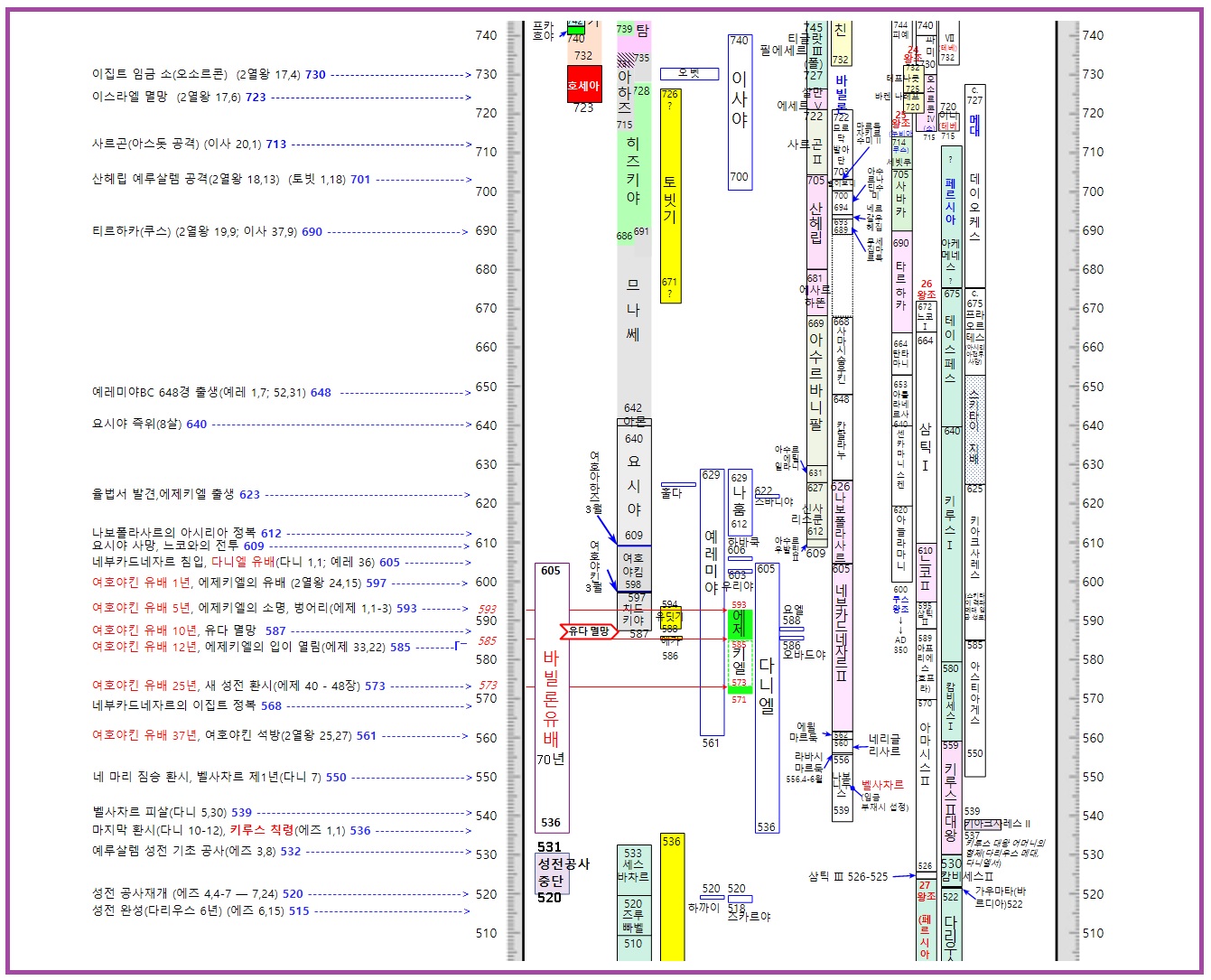 아래 그림표는 에제키엘서와 관련된 전체 기간에 대한 연대표이다.
