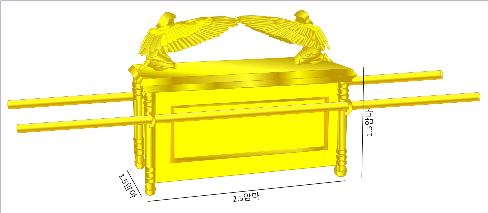 371[37,1–9] 탈출 25,10–22.브찰엘은 아카시아 나무로 궤를 만들었다.그 길이는 두 암마 반,너비는 한 암마 반,높이도 한 암마 반으로 하였다.2순금으로 안팎을 입히고 그 둘레에는 금테를 둘렀다.3금 고리 네 개를 부어 만들어 네 다리에 달았는데,한쪽에 고리 두 개,다른 쪽에 고리 두 개를 만들었다.4그리고 아카시아 나무로 채를 만들어 금을 입혔다.5그 채를 궤 양쪽 고리에 끼워 궤를 들 수 있게 하였다.6그는 순금으로 속죄판을 만들었다.그 길이는 두 암마 반,너비는 한 암마 반으로 하였다.7그리고 금으로 커룹 둘을 만들었는데,속죄판 양쪽 끝을 마치로 두드려 만들었다.8커룹 하나는 이쪽 끝에,다른 하나는 저쪽 끝에 자리 잡게 하였다.그 커룹들을 속죄판 양쪽 끝을 늘여 만들었다.9커룹들은 날개를 위로 펴서 그 날개로 속죄판을 덮고,서로 얼굴을 마주 보게 하였다.커룹들의 얼굴은 속죄판 쪽을 향하게 하였다.