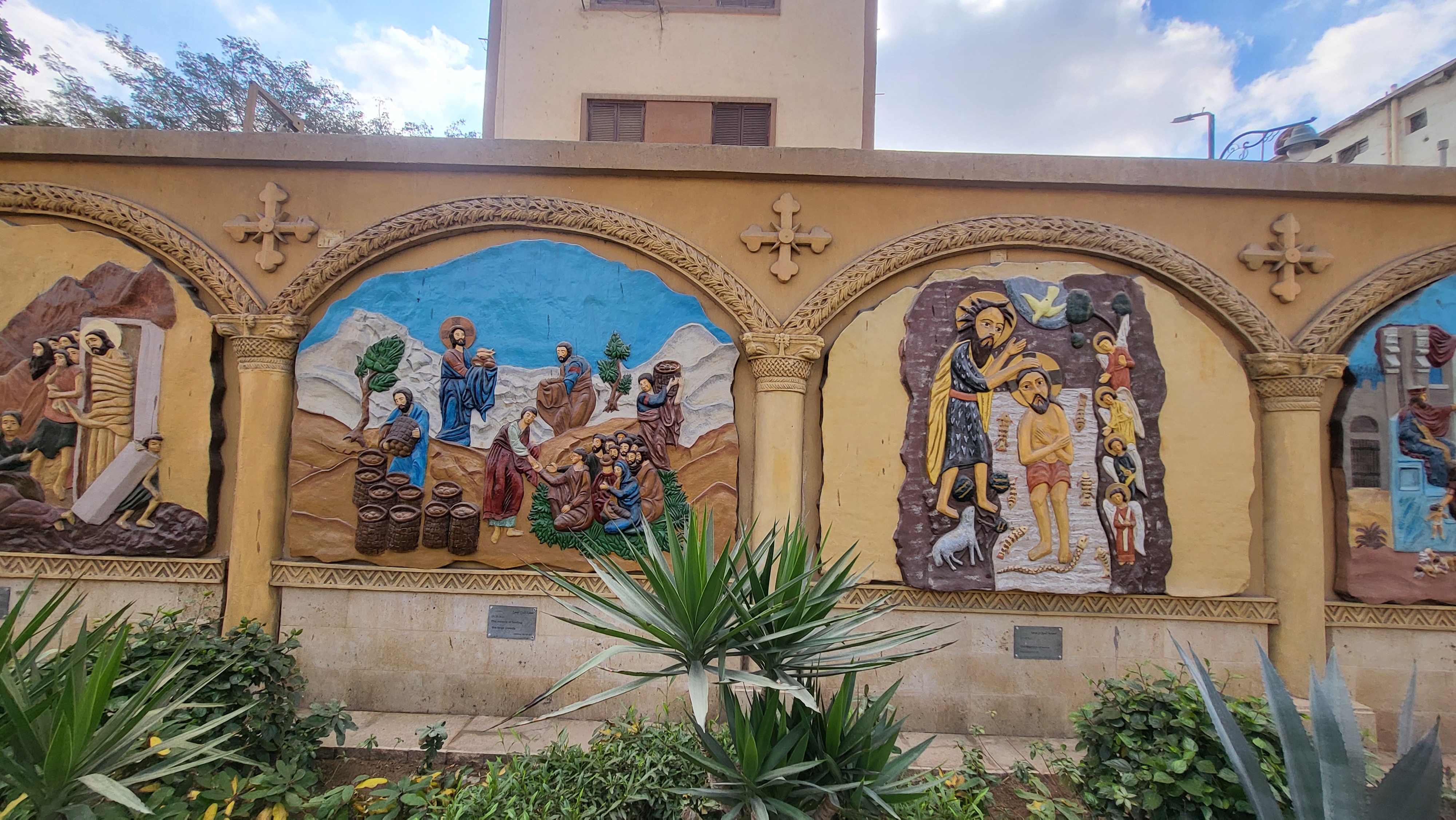 벽에는 예수님의 탄생 및 여정과 관련된 벽화가