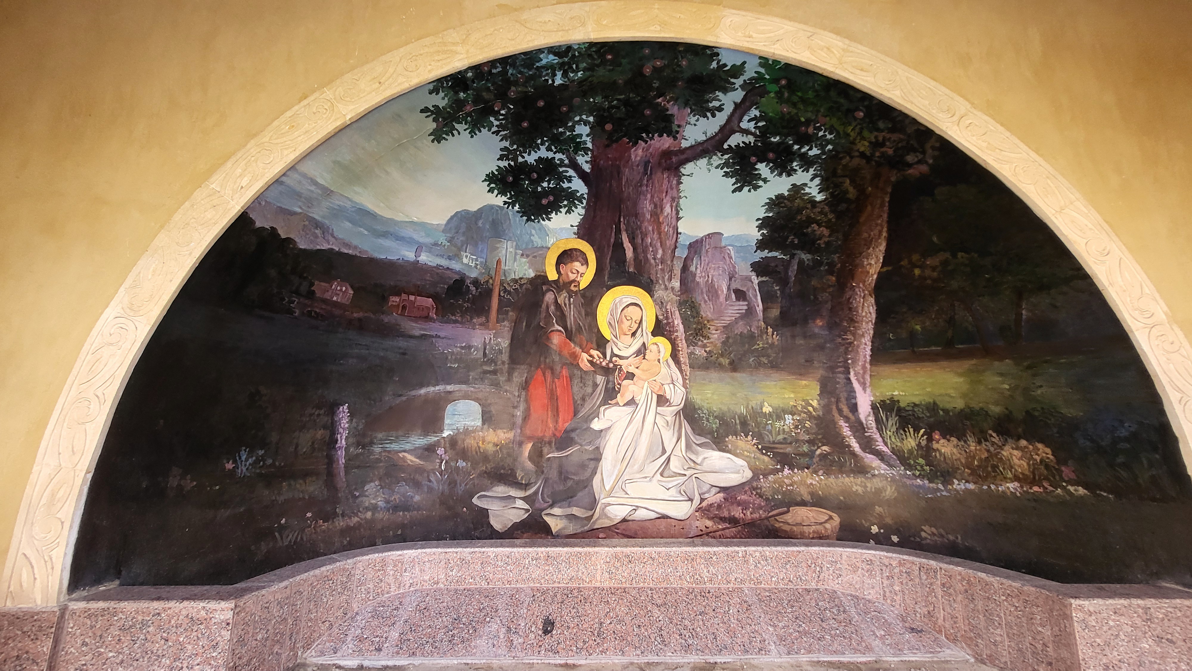 성가정이 나무 그늘 아래에서 쉬는 모습의 성화이다.