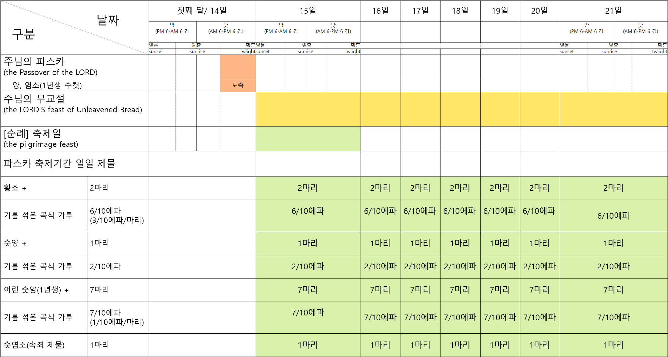 | 일일 번제물 | 아침 | 저녁 어스름 | 비고 |