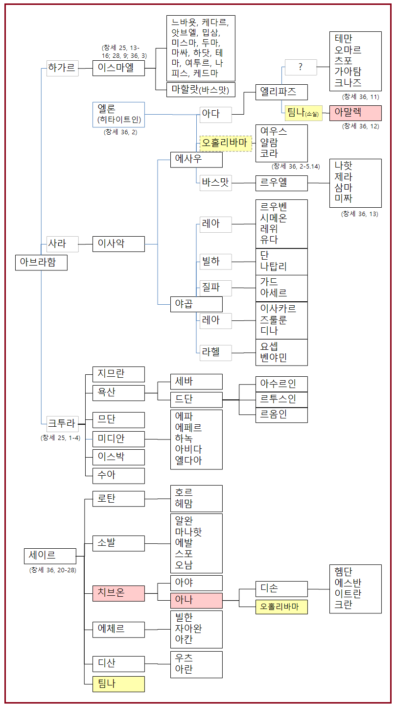☞ 가계도 참조(호르 사람 세이르의 자손 포함)