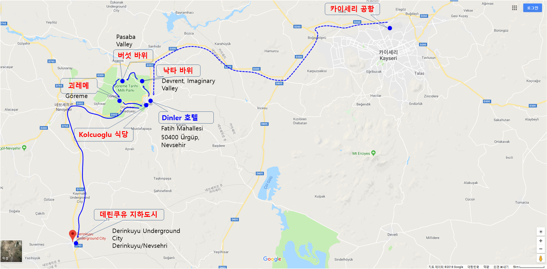 | 다음 행선지는 지하 도시가 위치한 데린쿠유이다. 외세의 침략을 피해 지하로 들어간 초기 그리스도인들의 거주지이다. |