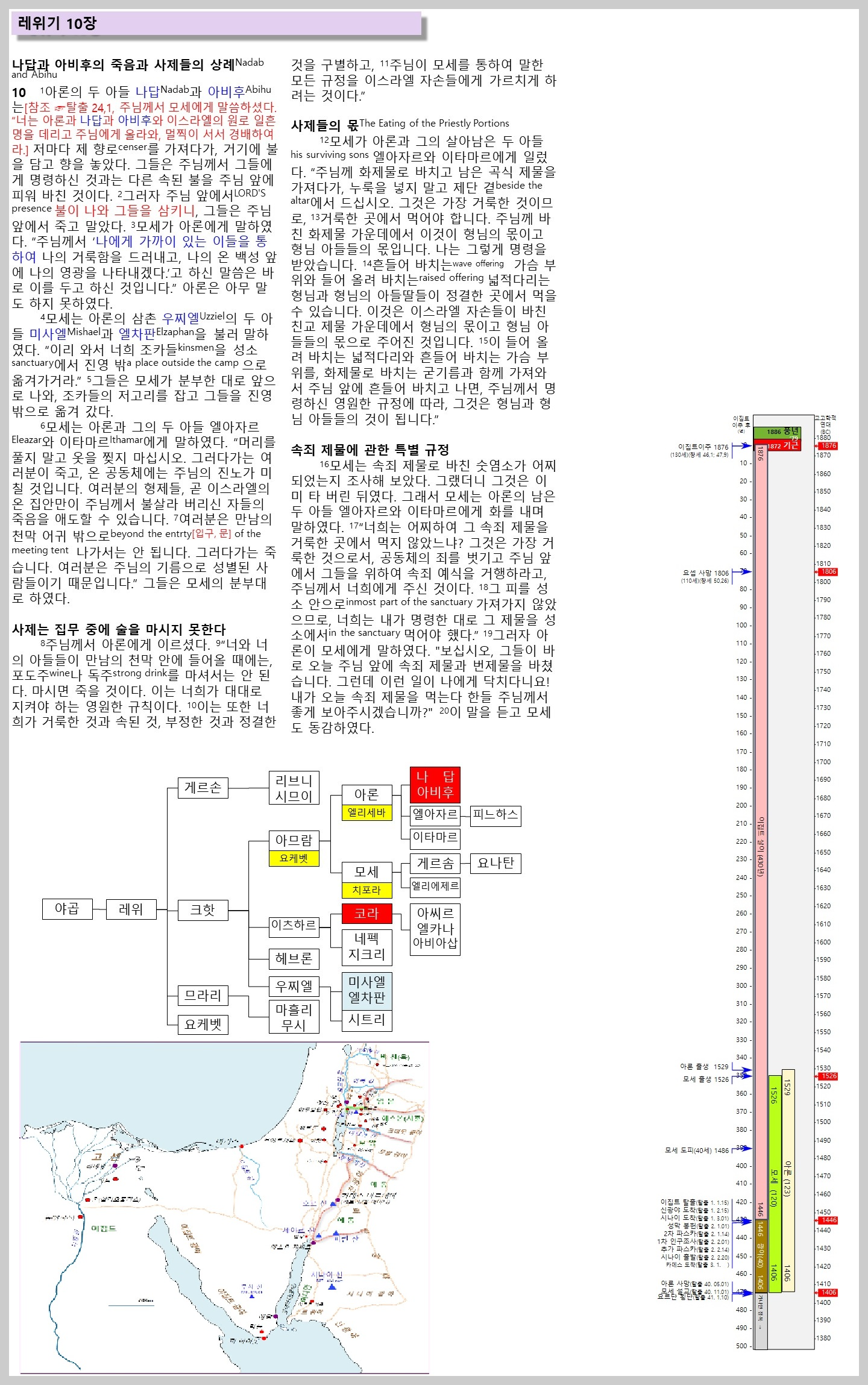 레위기 10장은 나답과 아비후의 죽음에 대해 나온다. 이는 사제로서의 품성과 인성의 중요성을 드러내고자 한 것이다. 왜냐하면 레위 8장부터 10장까지의 핵심 내용은사제 직분의 거룩함을 이야