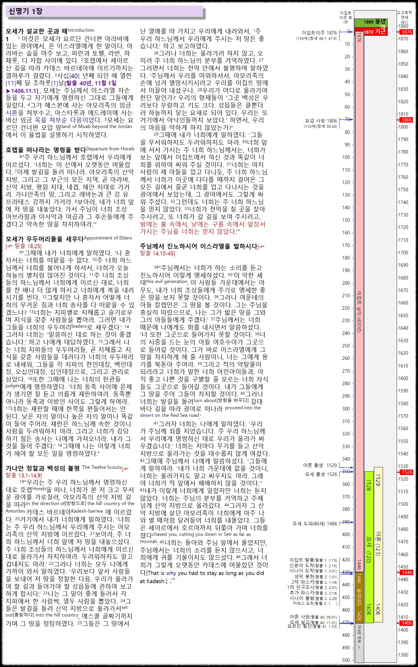 [1,1] 신명기 전체는 이스라엘 백성이 요르단 강을 건너기 직전(민수 3장), “요르단 건너편” 모압 땅(비교, 5절; 민수 36,13)으로 설정되어 있다.