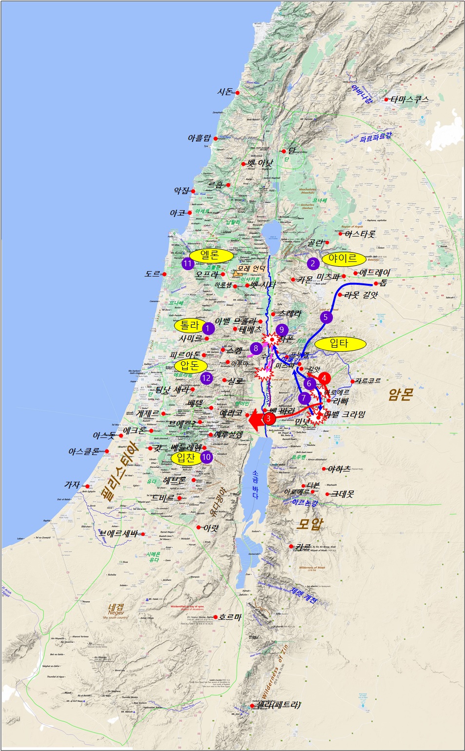 ▶판관 톨라, 야이르, 입타, 입찬, 엘론, 압돈의 활동 영역