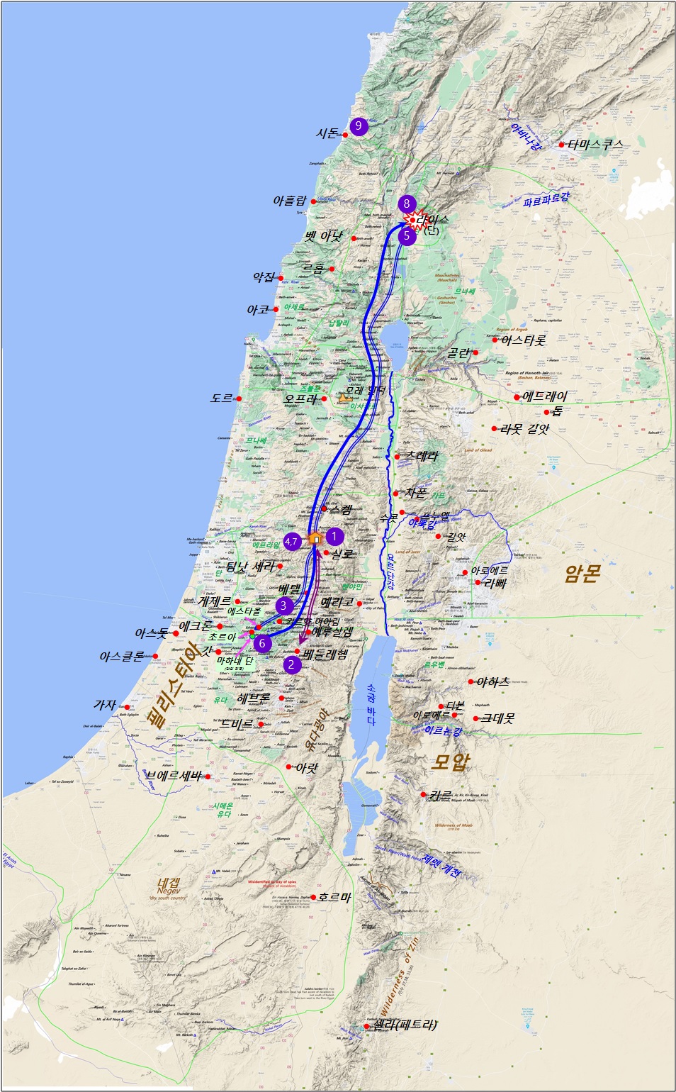 ▶미카의 신당과 단 지파의 이주 관련 지도
