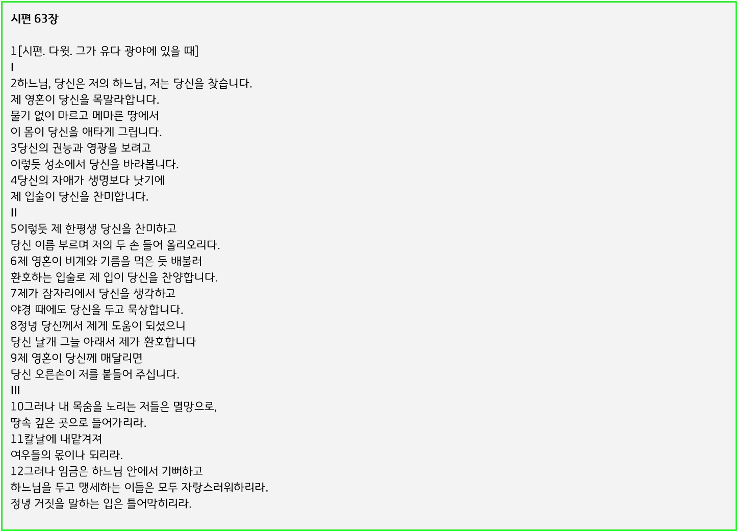 | 다윗이 유다 광야에 머무르는 동안 하느님의 구원을 찾는 많은 시편을 쓰는데, 시편 63장도 이때 쓰여졌을 것이다. |