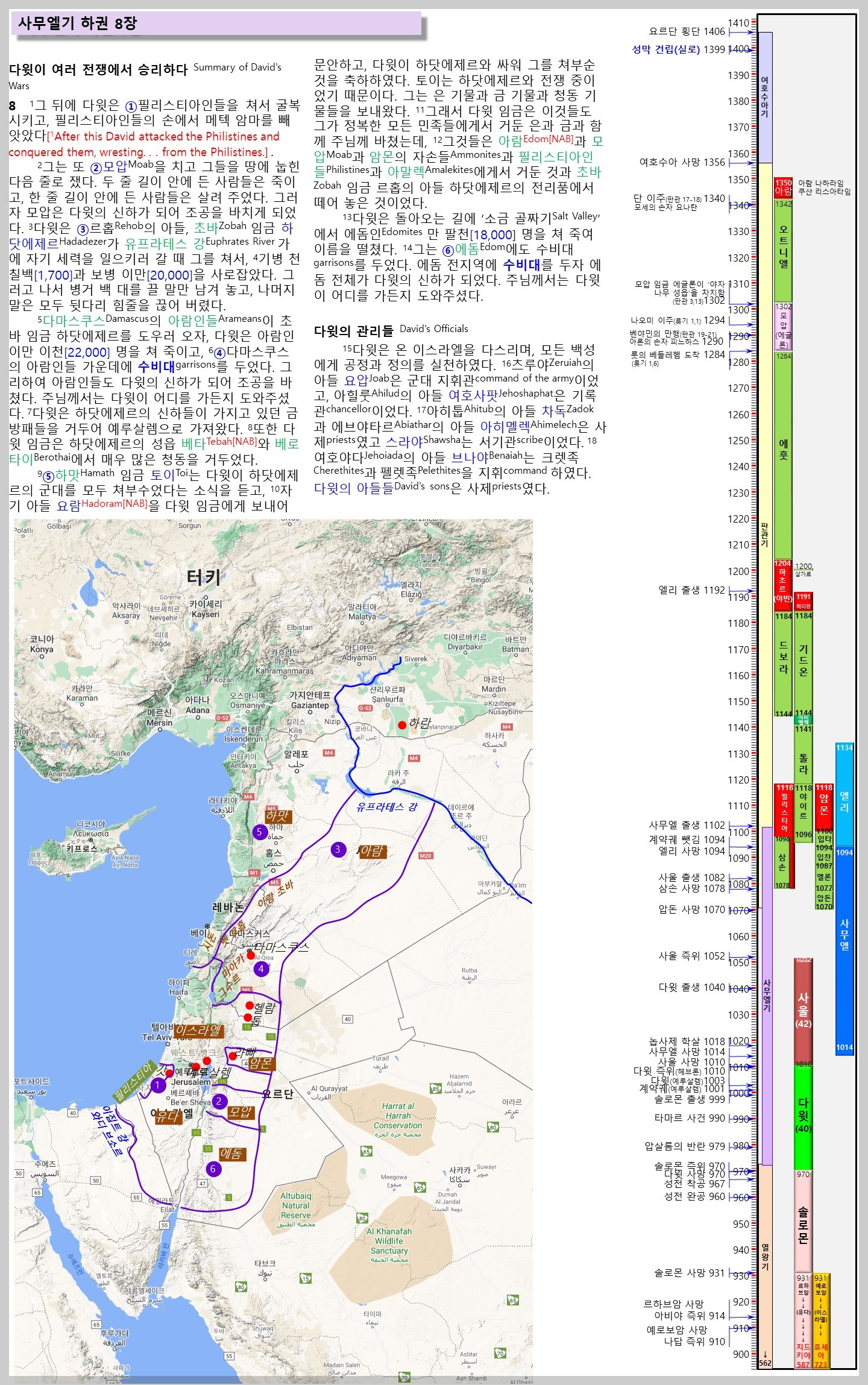1. 다윗이 온 이스라엘의 임금이 되다(BC 1003년)더보기3그리하여 이스라엘의 원로들이 모두 헤브론으로 임금을 찾아가자, 다윗 임금은 헤브론에서 주님 앞으로 나아가 그들과 계약을 맺었다. 그