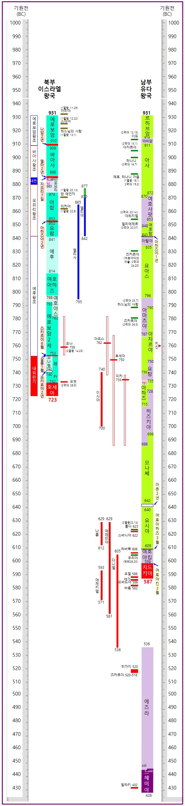 아래 표는 고고학적 성경 연대를 고려하여 정렬한 예언서 연대표이다.