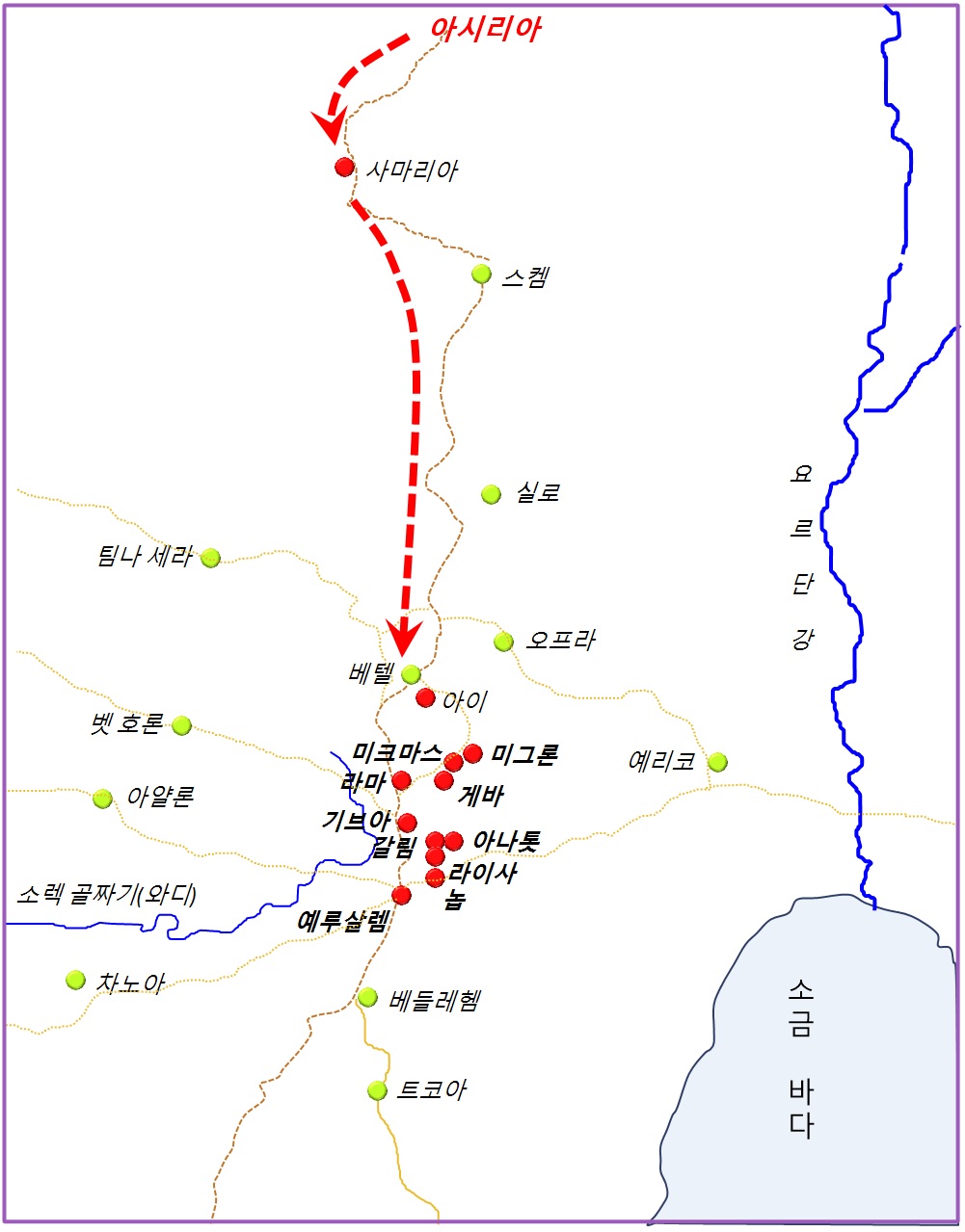 ▶아시리아의 침공 (이사 10, 27ㄴ-32 관련 지도)