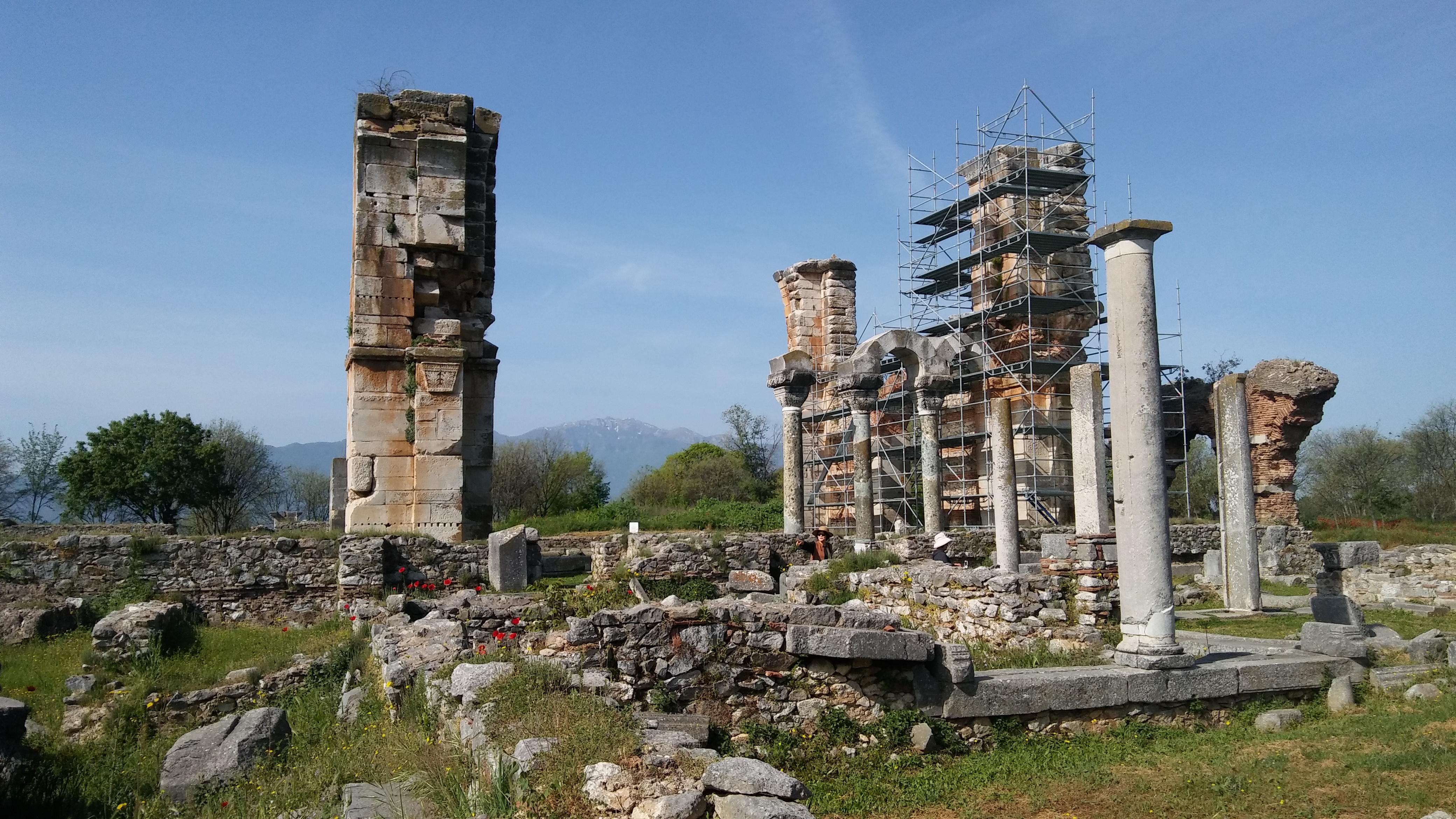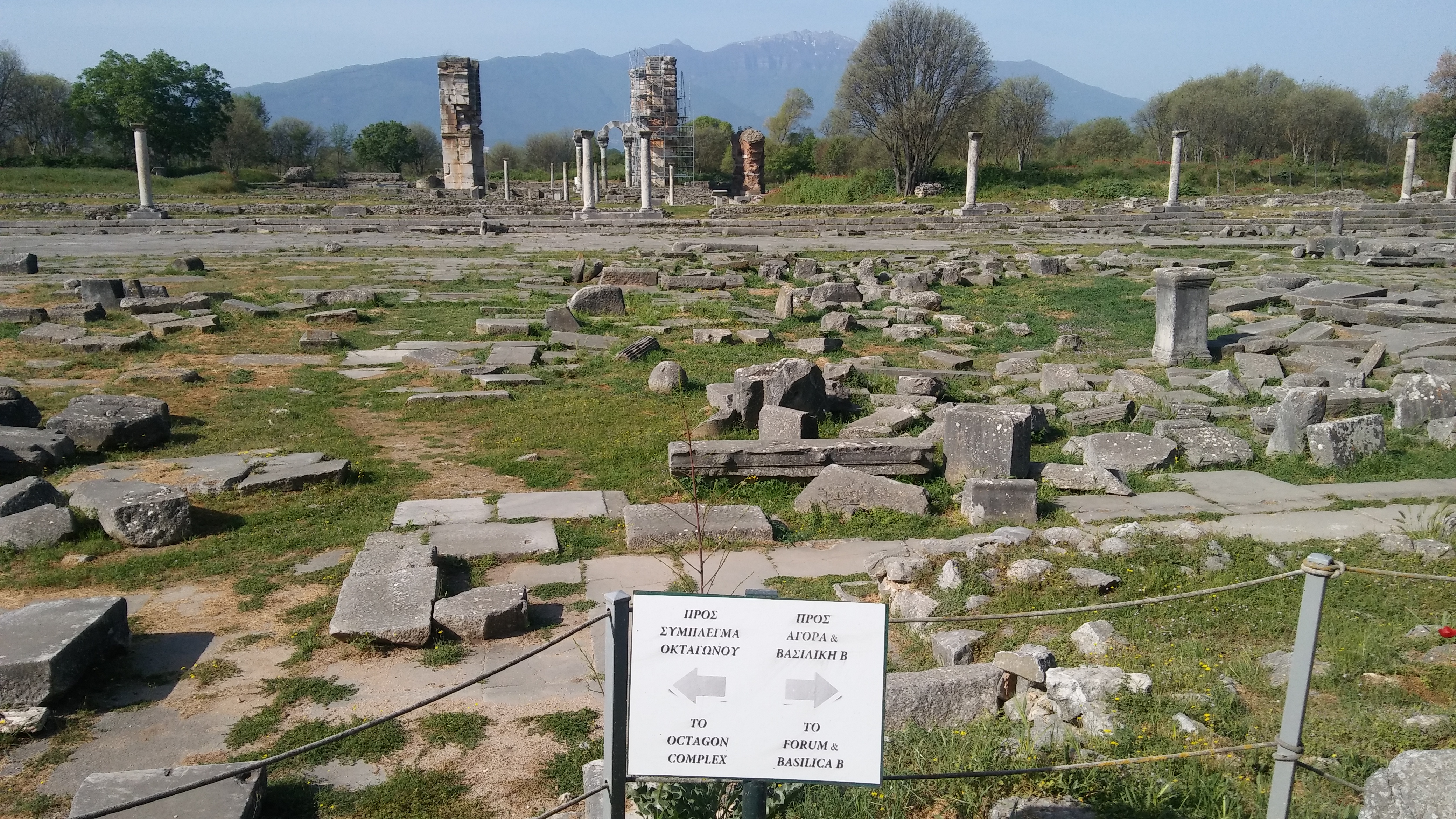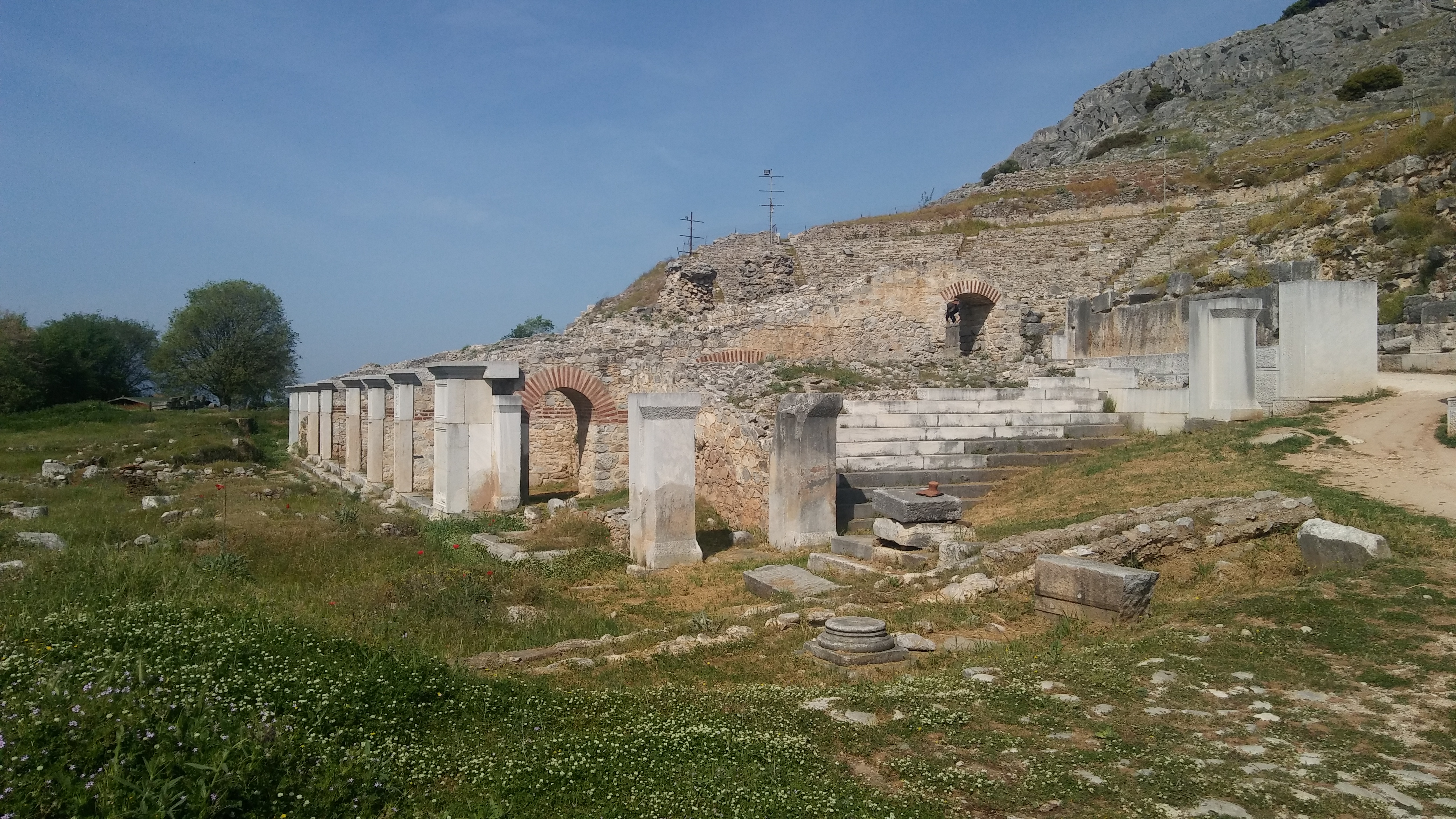 사도 바오로를 가둔 감옥 앞의 도로 건너편에 위치한 고대 필리피 유적이다.