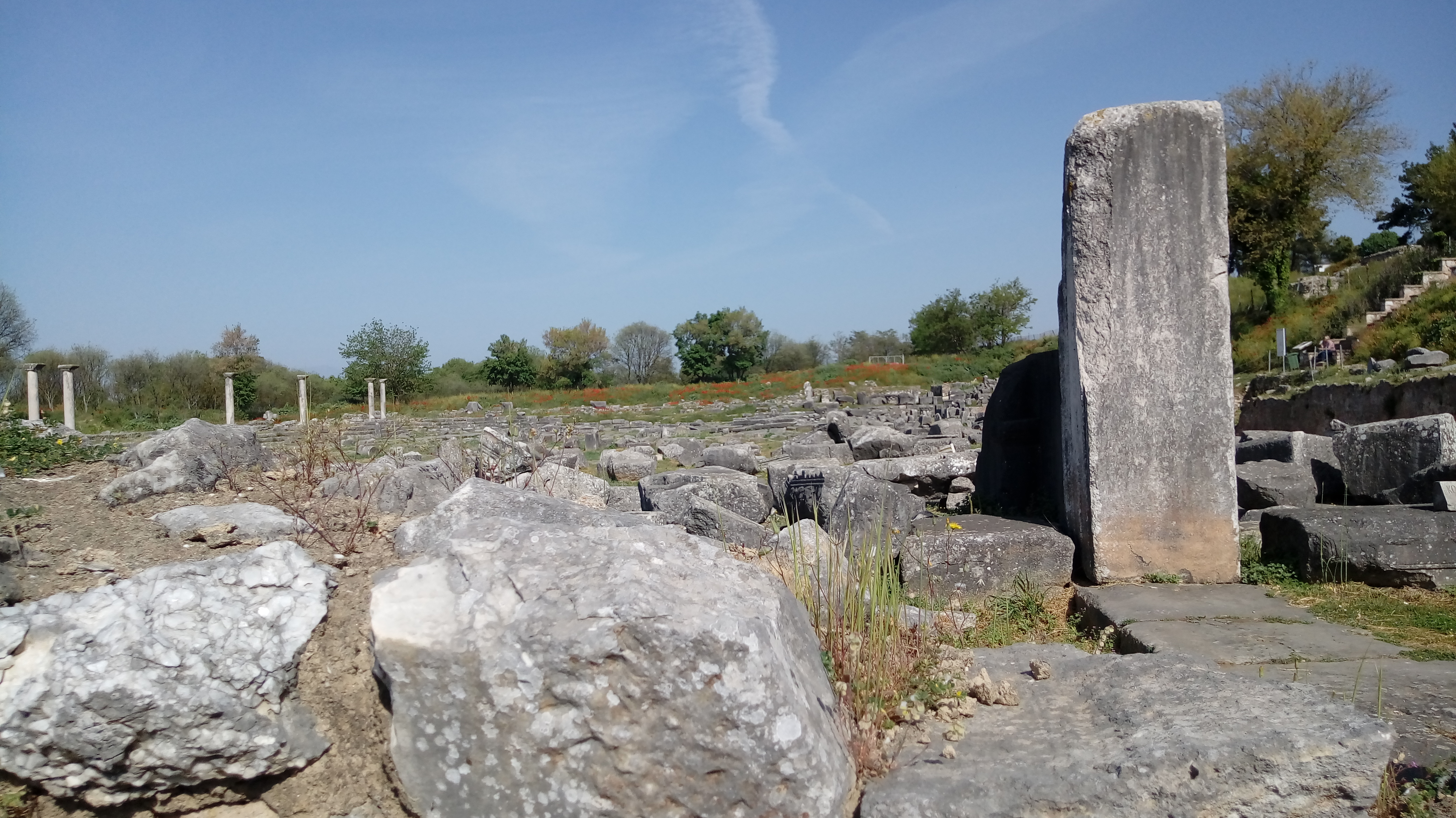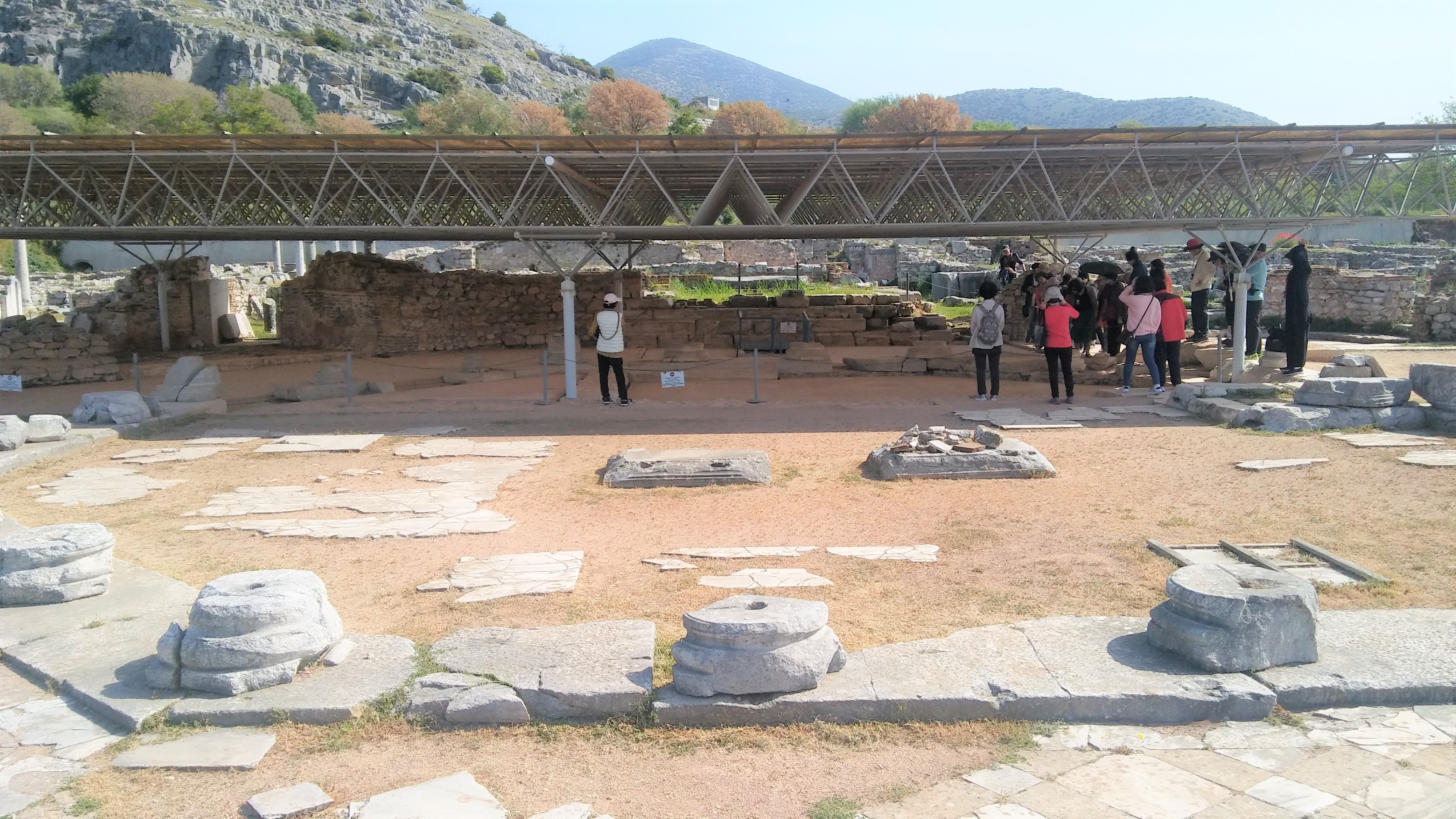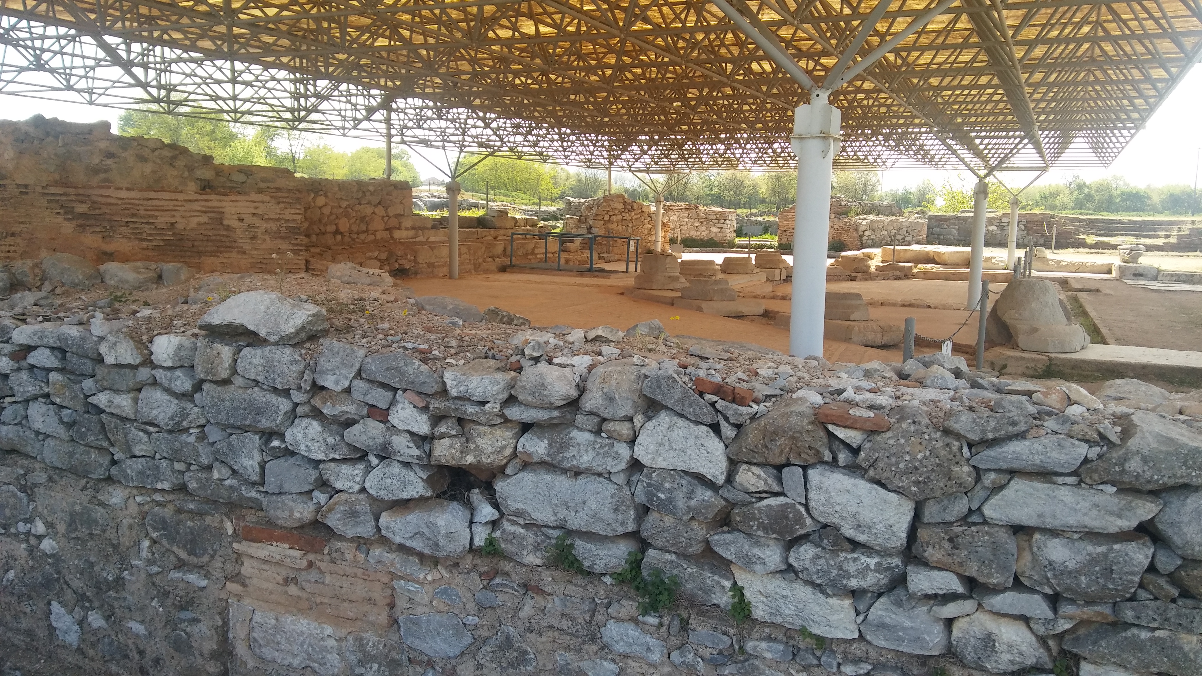 사도 바오로를 가둔 감옥 앞의 도로 건너편에 위치한 고대 필리피 유적이다.